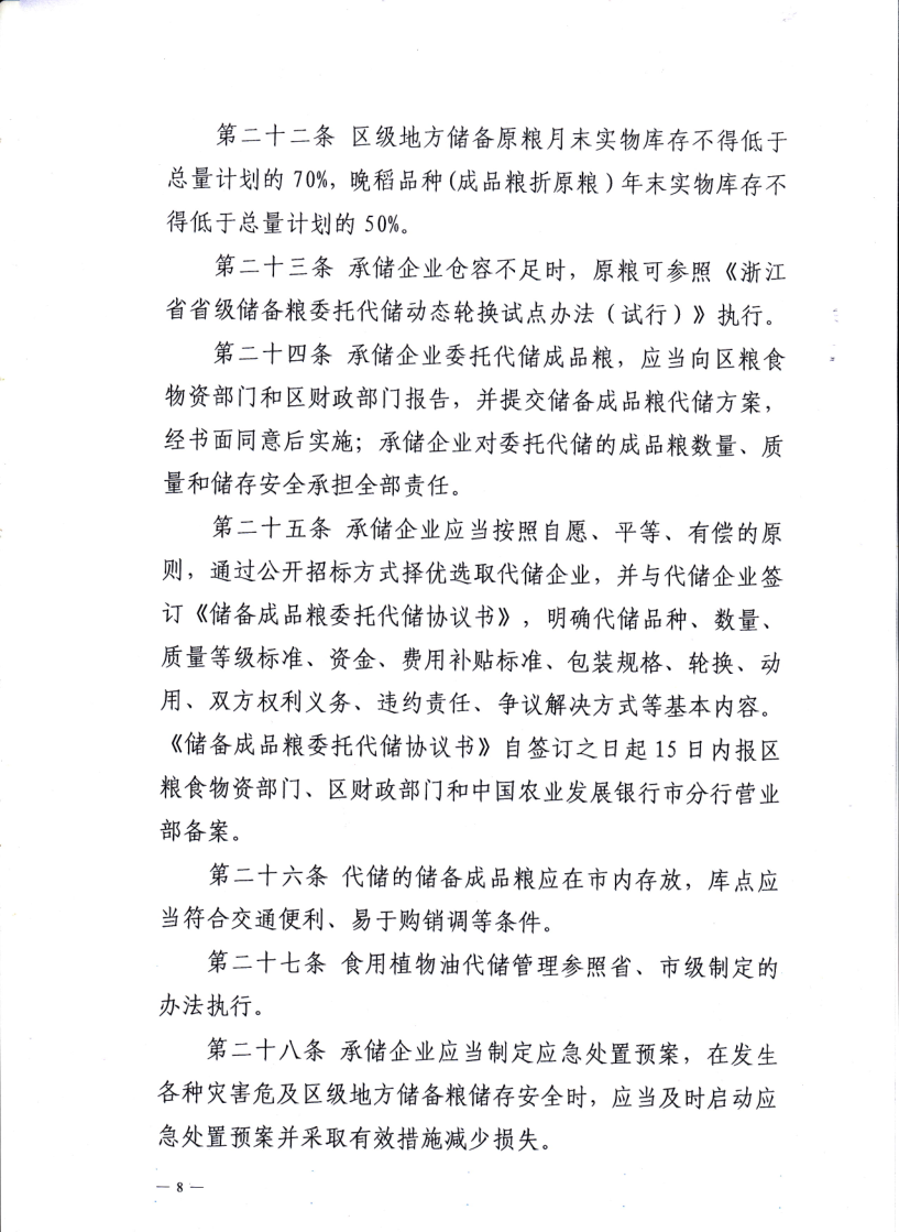 鄞州區(qū)級地方儲備糧管理(暫行)辦法